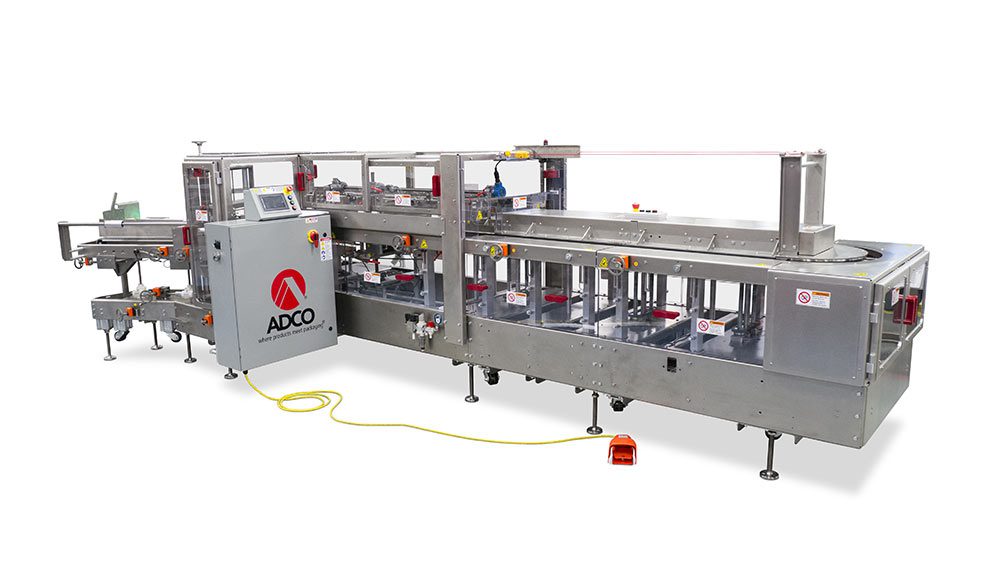 The VHL is a continuous motion machine designed to run seal end cartons vertically so that the opening is facing up. The cartons are erected by an orbital pre-break feeder from the horizontal powered carton magazine. Once the cartons are erected, the bottom flaps are closed and sealed. The cartons then pass by the horseshoe-shaped load table where multiple operators drop the product into the carton. The top flaps are then closed and sealed with hot melt adhesive. Like all ADCO machines, the VHL is constructed out of stainless steel and is available in both, standard and washdown configurations.